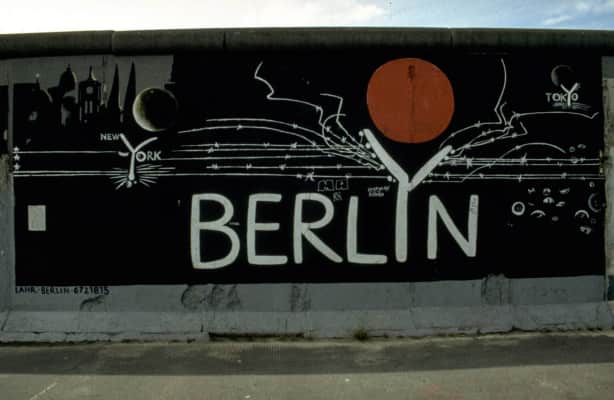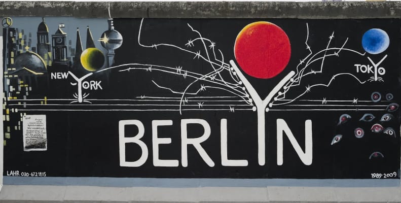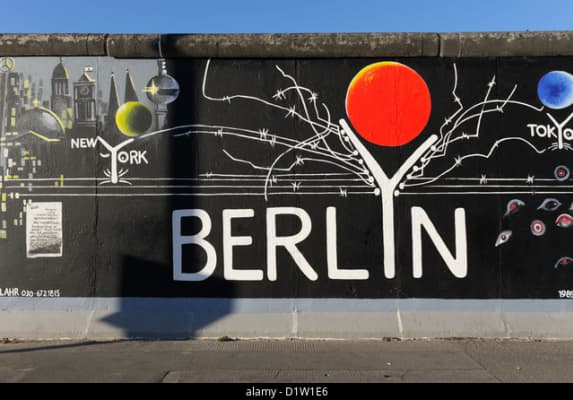 Gerhard Lahr, geboren 1938 in Reichenbach, starb 2012 in Berlin. Er war in der DDR ein bekannter Kinderbuch-Illustrator. In seinem Wandbild „BERLYN“ stellt Lahr die Berliner Mauer der ersten Ausbaustufe mit Stacheldraht in Y-Form dar.