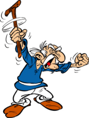 Geriatrix (French: Agecanonix) is the oldest inhabitant of Asterix's village. He is said to be 93 years old in Asterix at the Olympic Games (which would place his birth around 143 BC). While drunk, he says he feels ten years younger: to which Asterix replies, "Well, that makes you 83, and it's time you were in bed").