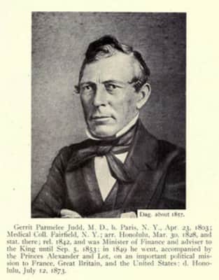Gerrit Parmele Judd was an American physician and missionary to the Kingdom of Hawaii who later renounced his American citizenship and became a trusted advisor and cabinet minister to King Kamehameha III. He married missionary and historian Laura Fish Judd in 1827.