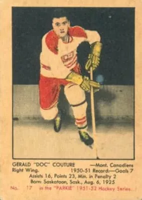 Gerald Joseph Wilfred Arthur Couture was a Canadian ice hockey centre. He played in the National Hockey League with the Detroit Red Wings, Montreal Canadiens, and Chicago Black Hawks between 1945 and 1954. With Detroit he won the Stanley Cup in 1950.