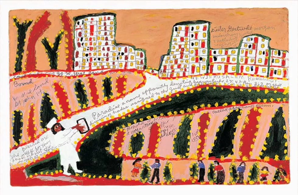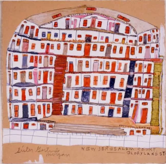 Sister Gertrude Morgan was a self-taught African-American artist, musician, poet and preacher. Born in LaFayette, Alabama, she relocated to New Orleans in 1939, where she lived and worked until her death in 1980. Sister Morgan achieved critical acclaim during her lifetime for her folk art paintings.