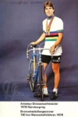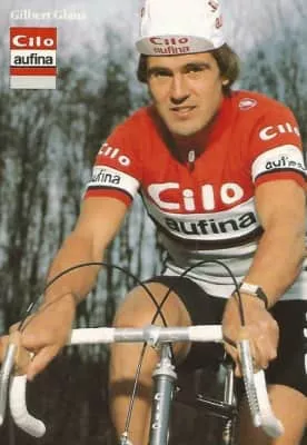 Gilbert Glaus is a retired Swiss professional road bicycle racer. In 1978, Glaus became amateur world champion, and he became a professional cyclist in 1982. In 1983, Glaus won a stage in the 1983 Tour de France, but in the 1984 Tour de France he was the Lanterne rouge.
