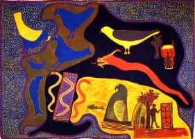 Ginger Riley Munduwalawala was an Australian contemporary artist. He was born incountry, in the Limmen Bight area of the Gulf of Carpentaria coast. His first language was Marra, now a critically endangered language. Riley became an artist during the 1950s as a result of his encounter with Albert Namatjira.