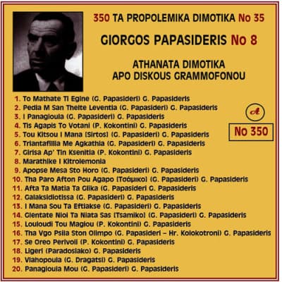 Giorgos Papasideris was a Greek singer, composer, and lyricist. He was born on Salamis Island. After leaving elementary school, he spent his entire career working professionally in the field of traditional Greek folk music, producing many popular recordings. He died of a heart attack in 1977 on Salamis Island.