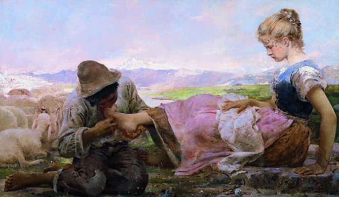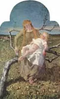 Giovanni Segantini was an Italian painter known for his large pastoral landscapes of the Alps. He was one of the most famous artists in Europe in the late 19th century, and his paintings were collected by major museums. In later life, he combined a Divisionist painting style with Symbolist images of nature.