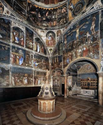 Giusto de' Menabuoi was an Italian painter of the early Renaissance. He was born in Florence. Probably, but not confirmed as, a pupil of Giotto, de' Menabuoi was notable for his use of bright colour and became a painter at the court of Da Carrara.
