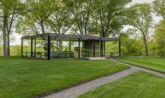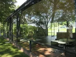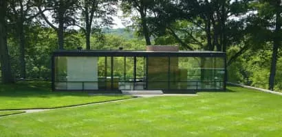 The Glass House, or Johnson house, is a historic house museum on Ponus Ridge Road in New Canaan, Connecticut built in 1948–49. It was designed by Philip Johnson as his own residence, and "universally viewed as having been derived from" the Farnsworth House in Plano, Illinois design, according to Alice T. Friedman.