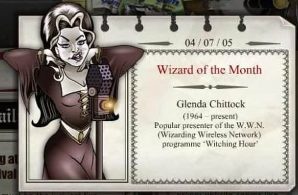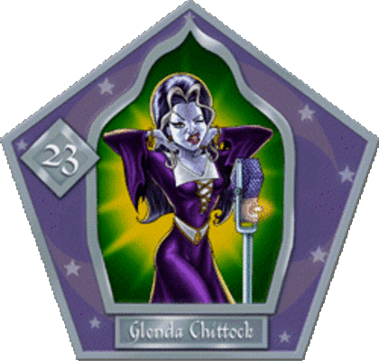 Glenda Chittock was a British witch who was host of the Wizarding Wireless Network programme, Witching Hour. Being host of this enormously famous radio programme, she is featured on a Chocolate Frog Card.