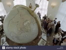 The Globe of Gottorf is a 17th-century large globe of the earth in the Kunstkamera museum in St. Petersburg in Russia. It measures 3. 1 meters in diameter. The globe details a map of the earth's surface on the outside and a map of star constellations with astrological and mythological symbols on the inside.