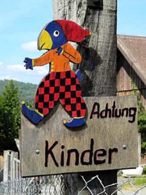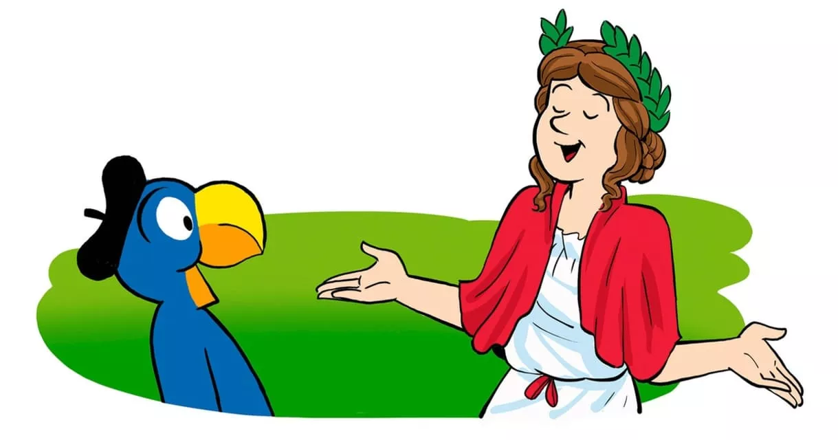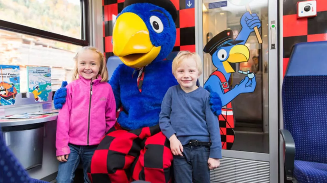 Globi is a Swiss cartoon character occasionally referred to as Switzerland's Mickey Mouse. He is pictured as an anthropomorphic blue parrot with a yellow beak wearing a black beret and a pair of red and black checkered trousers.