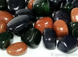 Goldstone is a type of glittering glass made in a low-oxygen reducing atmosphere. The finished product can take a smooth polish and be carved into beads, figurines, or other artifacts suitable for semiprecious stone, and in fact goldstone is often mistaken for or misrepresented as a natural material.