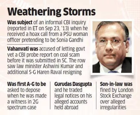 | Previous position | Attorney-General for India (2009–2014), Solicitor General of India (2004–2009) |