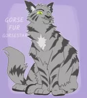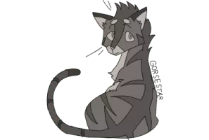 Gorsestar is a wiry, gray tabby tom with green eyes, a long tail, and spiky head fur.