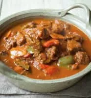 Goulash is a stew of meat and vegetables usually seasoned with paprika and other spices. Originating in medieval Hungary, goulash is a popular meal predominantly eaten in Central Europe but also in other parts of Europe. It is one of the national dishes of Hungary and a symbol of the country.