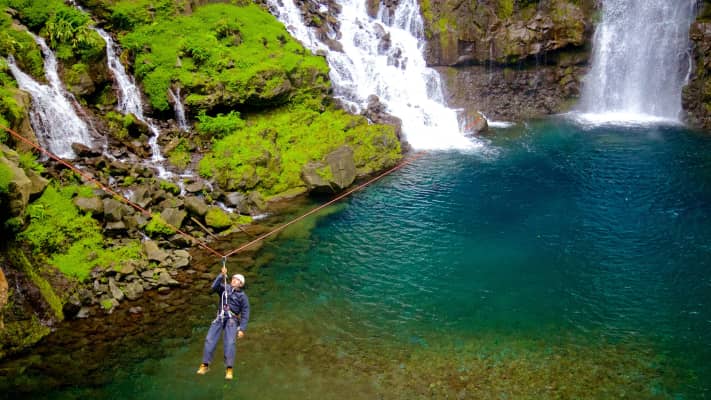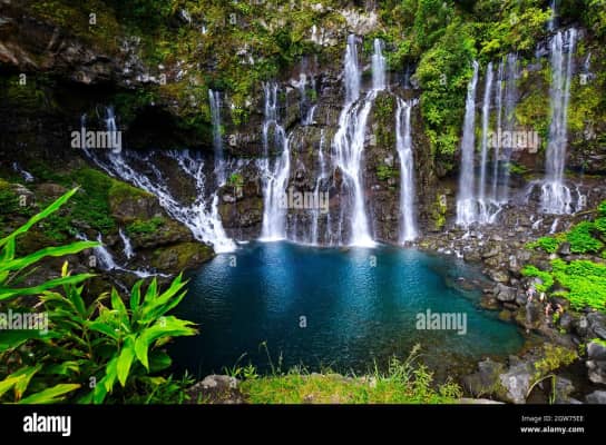 The Grand Galet Falls is situated in the commune of Saint-Joseph on the island of Réunion. It is situated in the Réunion National Park, and its natural pool is a popular swimming and picnic place on weekends and holidays.