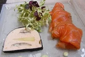 Gravlax or gravlaks is a Nordic dish consisting of raw salmon, cured in salt, sugar, and dill. Gravlax is usually served as an appetizer, sliced thinly and accompanied by hovmästarsås, a dill and mustard sauce, either on bread or with boiled potatoes.