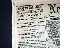 The Great Train Wreck of 1856 occurred in Whitemarsh Township, Pennsylvania, between Camp Hill Station and Fort Washington Station, on July 17, 1856. Two trains, traveling on the same track in converging directions, collided, killing between 59 and 67, and injuring over 100.