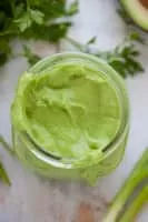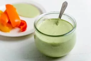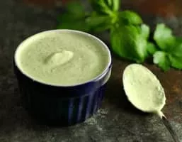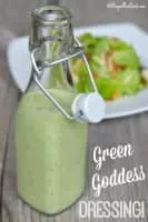 Green goddess is a salad dressing, typically containing mayonnaise, sour cream, chervil, chives, anchovy, tarragon, lemon juice, and pepper.
