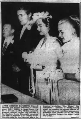 Gregory LaFayette was born on January 23, 1938 in New York City, New York, USA. He was an actor, known for Under Fire (1957), The United States Steel Hour (1953) and Studio One (1948). He was married to Judy Tyler. He died on July 4, 1957 in Wyoming, USA. © 1990-2022 by IMDb.com, Inc.1957