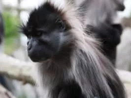 The grey-cheeked mangabey, also known as the white-cheeked mangabey, is an Old World monkey found in the forests of Central Africa. It ranges from Cameroon down to Gabon. The grey-cheeked mangabey is a dark monkey, looking in shape overall like a small, hairy baboon.