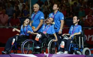 Grigorios Polychronidis is a Greek boccia player with a Paralympic boccia classification of BC3. His specific disability is Spinal Muscular Atrophy. He won the gold medal during the 2012 Summer Paralympics in BC3 mixed pairs along with Maria-Eleni Kordali and Nikolaos Pananos.