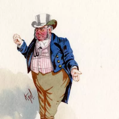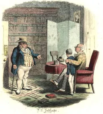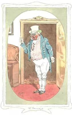 Mr. Grimwig is a typical Dickens character: he's eccentric, and his eccentricity takes the form of a frequently repeated verbal or physical tick.