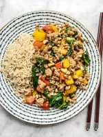 Ground turkey, or minced turkey, is a mixture of dark and light turkey meat with remaining skin and visible fat processed together until a "ground" form emerges. The turkey meat, skin, and fat is taken off the bone and processed with additives.