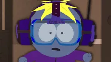 Butters thinks he's living in a virtual reality.