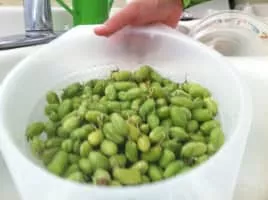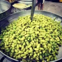 Guasanas is a dish from Mexico consisting of green chickpeas, water and salt. The chickpeas are steamed and shelled before serving.