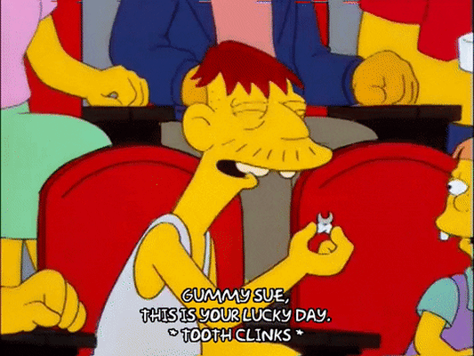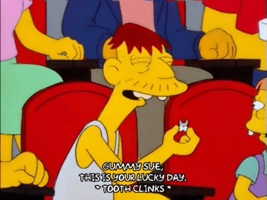 Gummy Sue Spuckler is one of Cletus and Brandine Spuckler's children. Her parents took her to a hockey game and won her a person's tooth which she uses to look like Britney Spears.