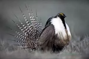 The Gunnison sage-grouse is a species of grouse endemic to the United States. It is similar to the closely related greater sage-grouse in appearance, but about a third smaller in size, with much thicker plumes behind the head; it also has a less elaborate courtship dance.