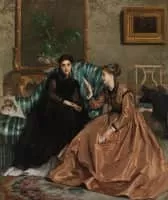 Gustave Léonard de Jonghe, Gustave Léonard De Jonghe or Gustave de Jonghe was a Belgian painter known for his glamorous society portraits and genre scenes. After training in Brussels, he started out as a painter of historical and religious subjects in a Realist style.
