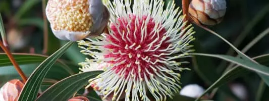 | Did you know | Some Hakeas have spidery flowers, like grevilleas, others have globe shaped, inflorescences, while others look like an elongated spear at the end of the branches. |