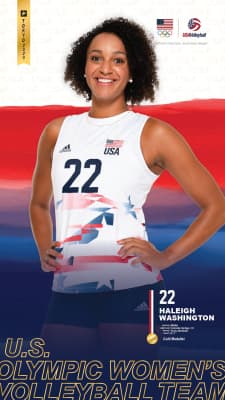 Haleigh Meridian Washington is an American volleyball player of the United States women's national volleyball team. Washington was an All-American middle blocker for the Penn State women's volleyball team, where she helped lead the team to the 2014 NCAA national championship.