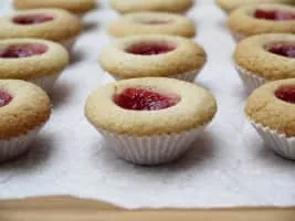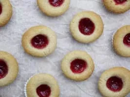 Hallongrotta is the name of a common Swedish pastry. The name means "Raspberry cave" in Swedish. In the United States they are known as thumbprint cookies. It is an easily baked molded cookie, flavored with vanilla. The cookies are usually filled with raspberry jam.