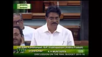 Kambhampati Hari Babu is an Indian politician and the current Governor of Mizoram. He was a member of parliament to the 16th Lok Sabha from Visakhapatnam, Andhra Pradesh. He won the 2014 Indian general election being a Bharatiya Janata Party candidate.