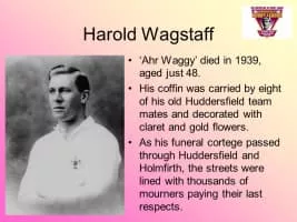 Harold Wagstaff was an English rugby league footballer of the early 20th century. He played as a centre and was nicknamed the Prince of Centres. A captain of Great Britain, he also played representative football for England, and Yorkshire.