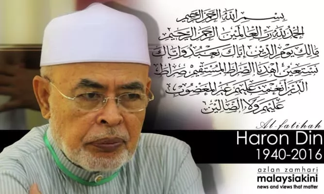 Haron bin Din was a Malaysian politician and Muslim cleric. He was the 3rd Spiritual Leader of the Malaysian Islamic Party from March 2015 after the death of his influential predecessor Nik Abdul Aziz Nik Mat to his own death in September 2016.
