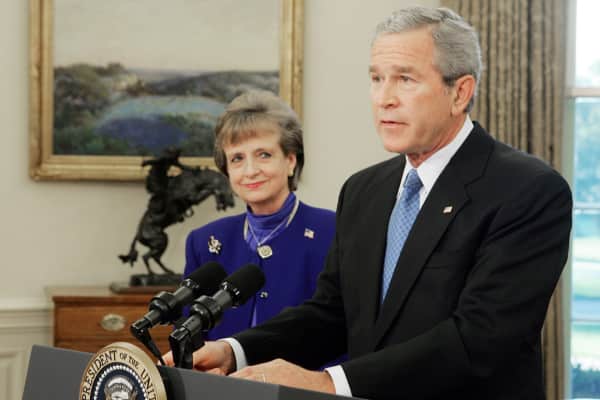 Harriet Ellan Miers is an American lawyer who served as White House counsel to President George W. Bush from 2005 to 2007. A member of the Republican Party since 1988, she previously served as White House staff secretary from 2001 to 2003 and White House Deputy Chief of Staff for Policy from 2003 until 2005.