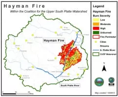 The Hayman Fire was a forest fire started on June 8, 2002, 35 miles northwest of Colorado Springs, Colorado and 95 miles southwest of Denver, Colorado and became the largest wildfire in the state's recorded history at over 138,114 acres.