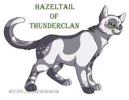 Hazeltail was a ThunderClan warrior that has served under Firestar's and Bramblestar's leaderships in the lake territories. She was born a loner to Daisy and Smoky as Hazel alongside Berry and Mouse. Daisy took her kits to live in ThunderClan for their protection, and she was renamed Hazelkit.