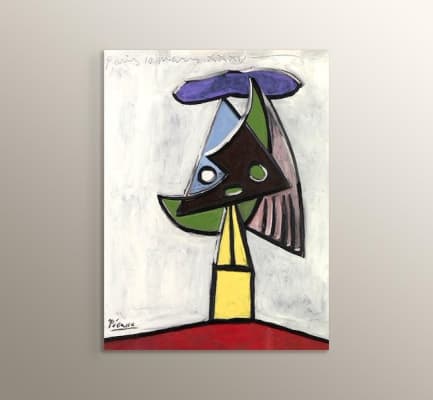 About Head of a Woman (Olga Picasso) Picasso painted 'Head Of a Woman' in 1930-31. His painting of his then partner, Olga Khokhlova, is depicted in an abstract and distorted style. Picasso's painting technique during this time period had been greatly influenced by Cézanne.