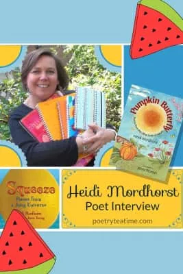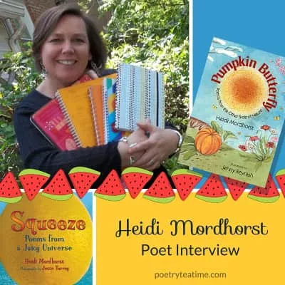 Heidi Mordhorst has been a teacher for twenty years and a poet for twice that long. She lives in Bethesda, Maryland. She gets her ideas while out walking to music, cooking, writing in her several notebooks and journals--and very often while listening to kids.