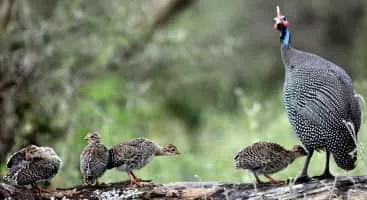 | Did you know | Helmeted Guineafowl is often domesticated, and it is this species that is sold in Western supermarkets. |