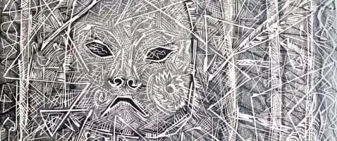 | Works | Untitled (black shirt on burgandy paper) |