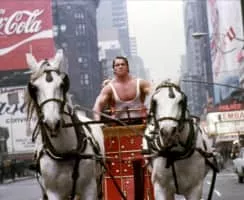 Hercules is sent from Mount Olympus to modern-day Manhattan, where he takes up professional wrestling before getting mixed up with a gang of mobsters. The actor billed as Arnold Strong is, in fact, a young Arnold Schwarzenegger, here making his film debut.