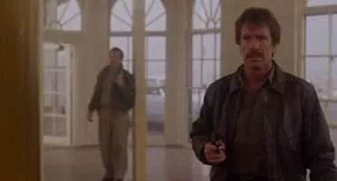 A Los Angeles policeman (Chuck Norris) searches an old theater for an escaped killer hulk called the Terror (Jack O'Halloran).