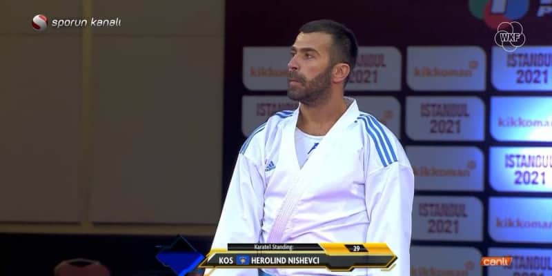 Herolind Nishevci is an Albanian karateka from Kosovo. Nishevci competed at the 2016 World Karate Championships at the 84 kg division and won the bronze medal.
