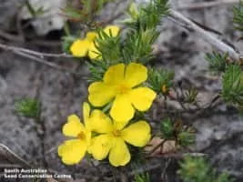 Hibbertia fasciculata, is a small shrub that is endemic to south-eastern Australia. It grows to 40 cm tall and has clusters of narrow leaves that are 4 to 6 mm long and about 0. 5 mm wide. Yellow flowers appear from winter to early summer.