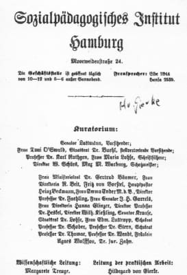 Die Sozialpädagogin Hildegard von Gierke trieb erfolgreich die Etablierung neuer sozialer und pädagogischer Frauenberufe voran. Sie lehrte im Verein Jugendheim Charlottenburg, leitete das Pestalozzi-Fröbel-Haus in Berlin Schöneberg und gehörte dem Bund Deutscher Frauenvereine an.